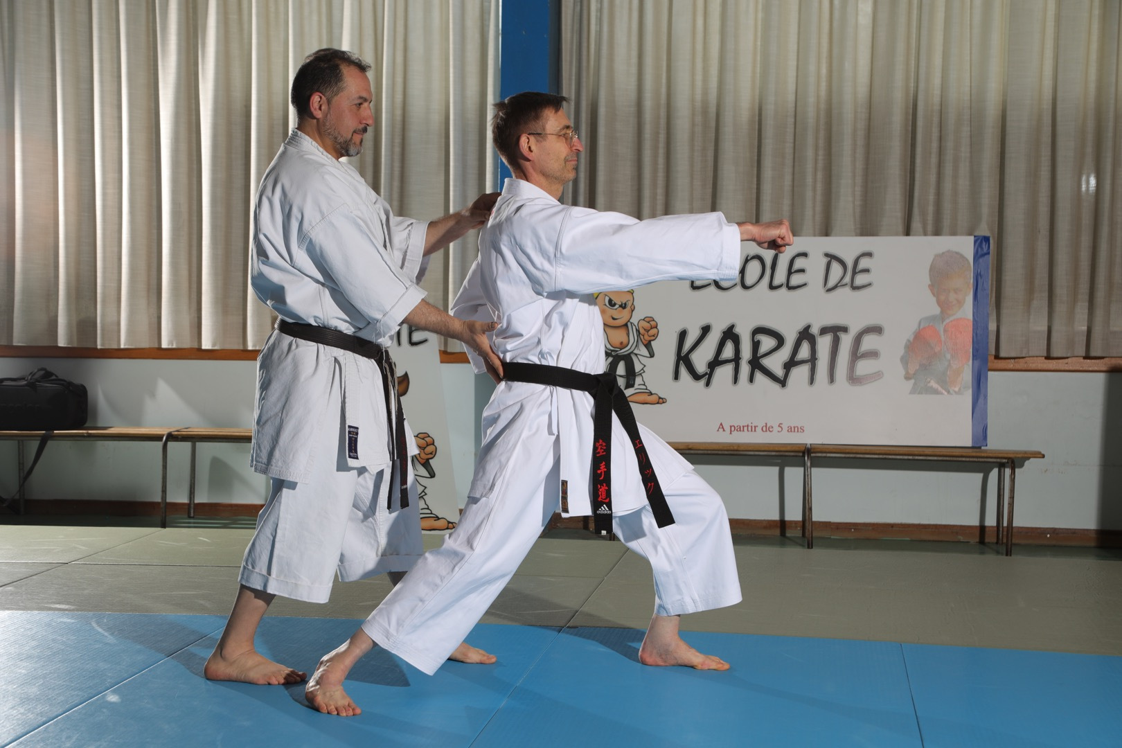 Le Karaté est un art martial japonais originaire de l’île d’Okinawa. Il consiste en l’utilisation de techniques à la fois offensives (attaque = atemi) et défensives (défense = uke) faisant appel à toutes les parties du corps : mains ouvertes (shuto), mains fermées (tsuki), pieds (geri), etc.