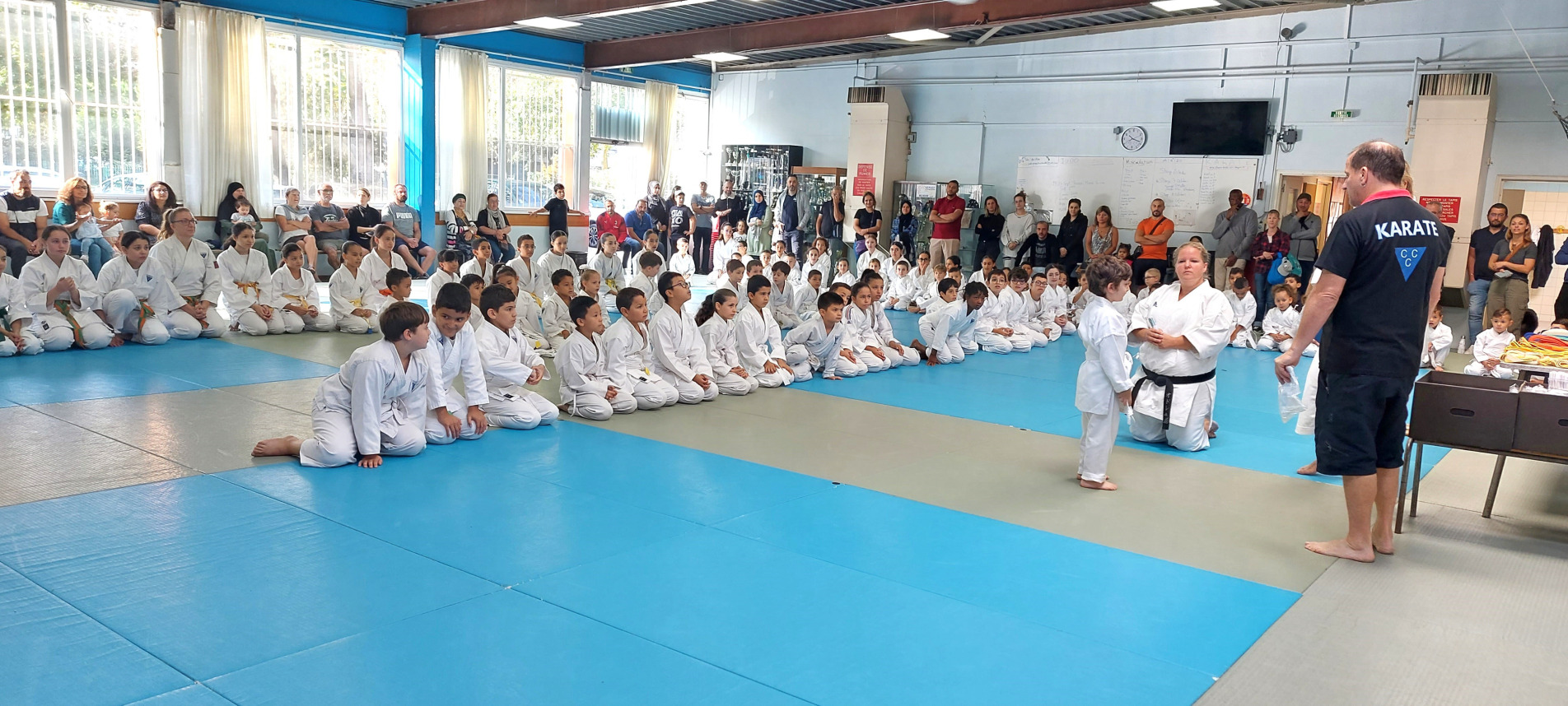 Dimanche particulier en ce début de saison, la remise des ceintures récompense les pratiquants des efforts fournis lors du passage de grade et tout au long de l'année. Remise effectuée par Audrey, Nathalie et Vincent avec la présence des enfants et des encadrants.